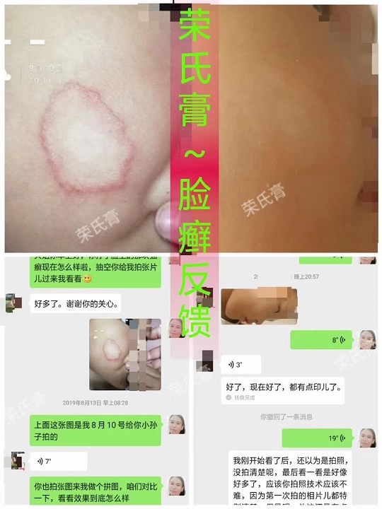 唐山这位小朋友脸上长了癣,去医院(诊断为猫癣)开了药没效果,且面积越来越大。使用荣氏高,效果非常满意荣氏高信者得福!